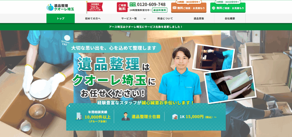 「地元で実績のある業者にいろんな相談がしたい」「処分する遺品も丁寧に扱って欲しい」という方には遺品整理クオーレ埼玉がおすすめです。